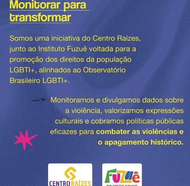 Este projeto é uma iniciativa do @centroraizes, junto ao @institutofuzue, em parceria com grandes redes nacionais como o @observatoriolgbti_br @acontecelgbti+ @abglt.oficial @antra.oficial