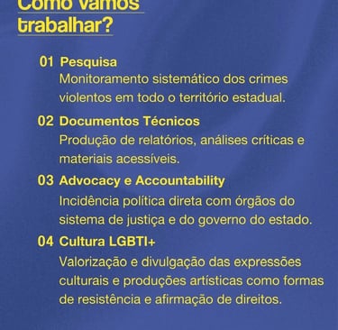 Nossa missão é transformar dados em ferramentas de disputa política e justiça social por meio do monitoramento rigoroso, produção de relatórios e incidência direta junto ao poder público.